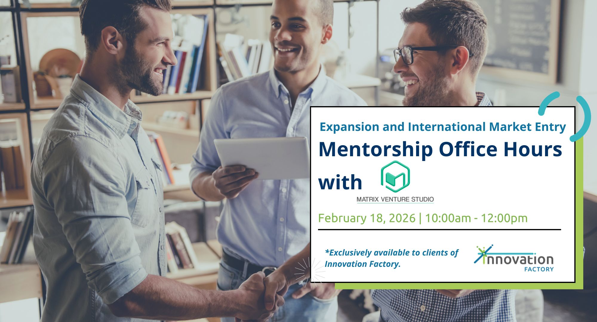 Innovation Factory is excited to offer our clients an exclusive opportunity to connect with Sharn Bassi and the team at Matrix Venture Studios for a dedicated 1:1 consultation. Matrix consists of experienced venture builders who specialize in helping startups move past domestic boundaries and into high-growth international markets. Whether you are currently planning your entry into a new country or are looking to refine your domestic scaling strategy, this is your chance to gain elite-level guidance tailored to your specific venture.